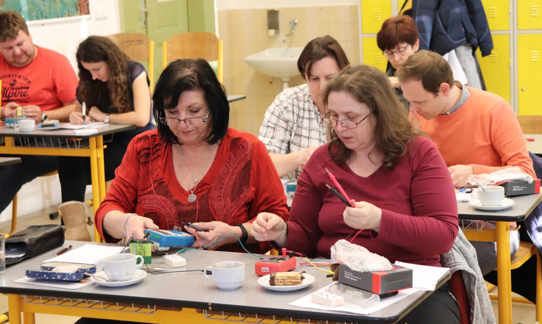 Byla to tentokrát praktická dílna, kde jsme si vyzkoušeli několik způsobů, jak určit elektrický odpor rezistoru.